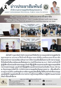 เมื่อวันที่ 4 กุมภาพันธ์ 2569 นายนราพงศ์ ธีรอัครวิภาส นายแพทย์สาธารณสุขจังหวัดสมุทรสงคราม มอบหมายให้เจ้าหน้าที่กลุ่มงานอนามัยสิ่งแวดล้อมและอาชีวอนามัย ลงพื้นที่เตรียมการจัดงานเฉลิมพระเกียรติพระบาทสมเด็จพระพุทธเลิศหล้านภาลัยประจำปี 2569...