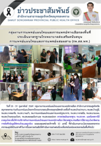 Read Moreเมื่อวันที่ 17 กุมภาพันธ์ 2569 นายนราพงศ์ ธีรอัครวิภาส นายแพทย์สาธารณสุขจังหวัดสมุทรสงคราม มอบหมายให้เจ้าหน้าที่กลุ่มงานคุ้มครองผู้บริโภคและเภสัชสาธารณสุข ประกอบด้วย นายคมทวน คมวุฒิการ เภสัชกรชำนาญการกับกลุ่มงานส่งเสริมสุขภาพ...