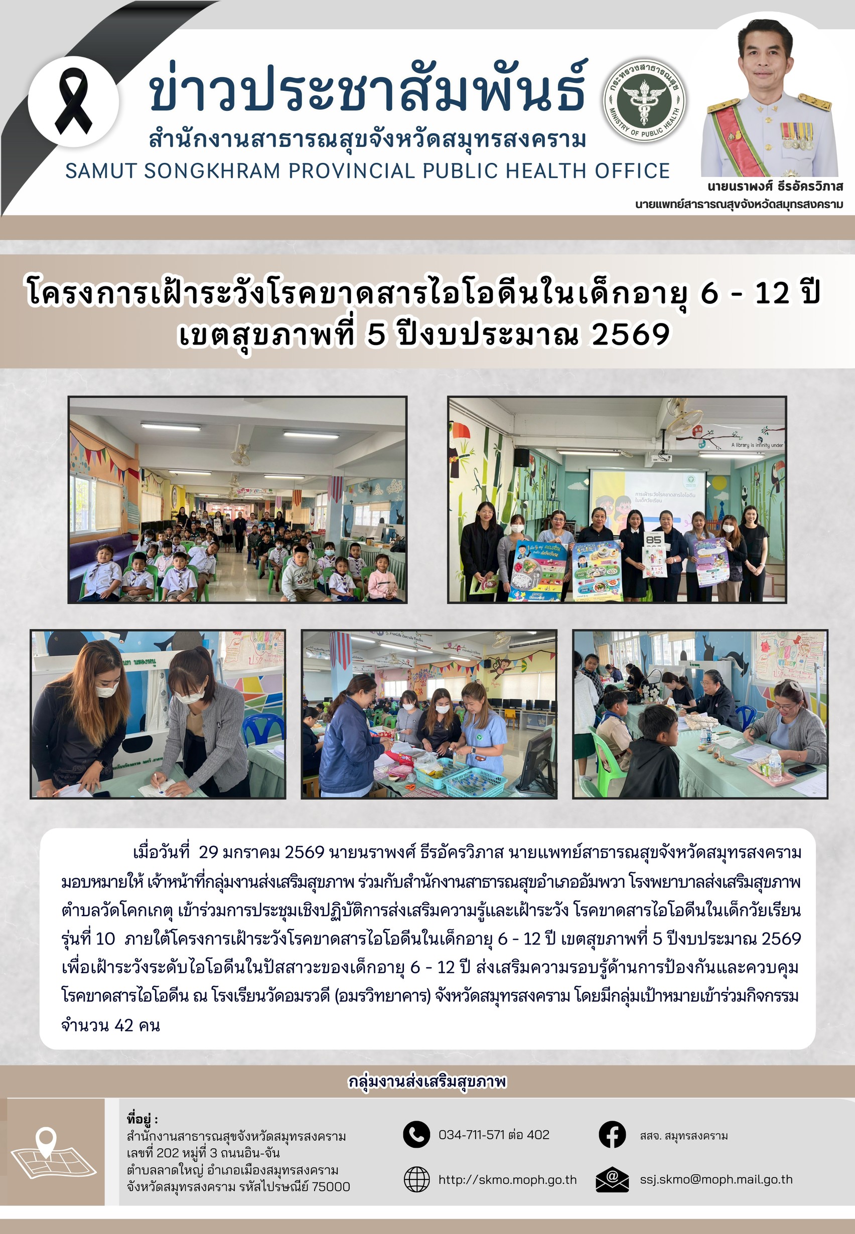 จัดโครงการเฝ้าระวังโรคขาดสารไอโอดีนในเด็กอายุ 6-12 ปี เขตสุขภาพที่ 5 ปีงบประมาณ 2569 ณ โรงเรียนวัดอมรวดี (อมรวิทยาคาร)