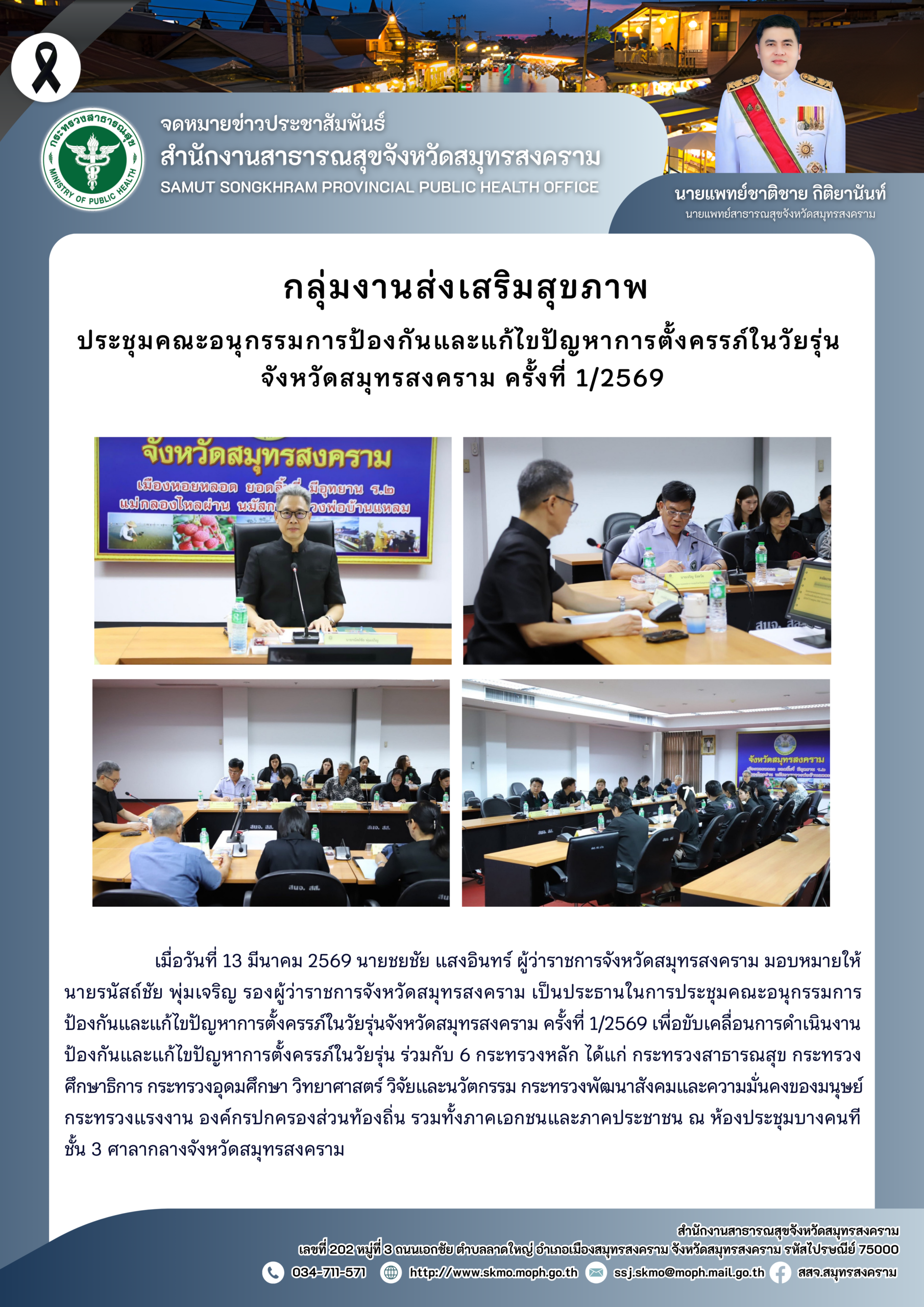 จัดประชุมคณะอนุกรรมการป้องกันและแก้ไขปัญหาการตั้งครรภ์ในวัยรุ่น จังหวัดสมุทรสงคราม ครั้งที่ 1/2569