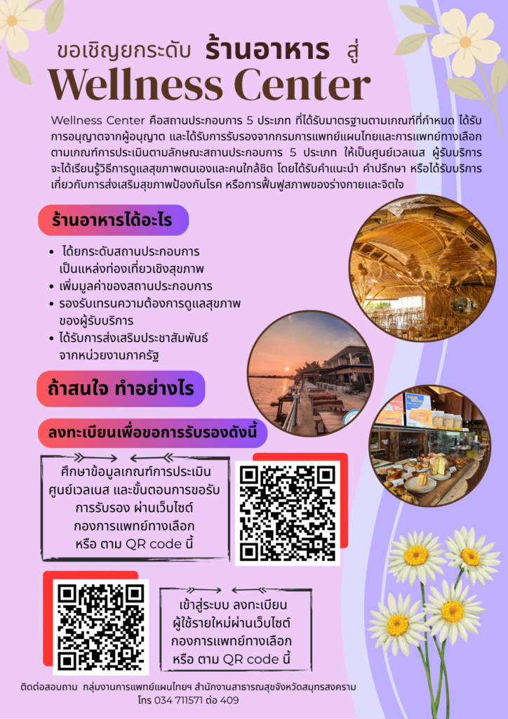 ประชาสัมพันธ์เพื่อเข้าร่วมเป็น Wellness Center สำหรับร้านอาหาร