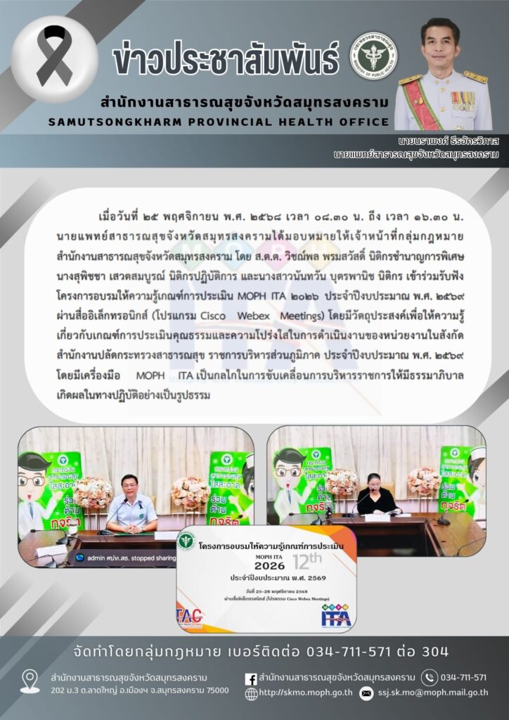 โครงการอบรมให้ความรู้เกณฑ์การประเมิน คุณธรรมและความโปร่งใสในการดำเนินงานของหน่วยงานในสังกัดสำนักงานปลัดกระทรวงสาธารณสุข ราชการบริหารส่วนภูมิภาค ประจำปีงบประมาณ พ.ศ. 2569 (MOPH ITA 2026)