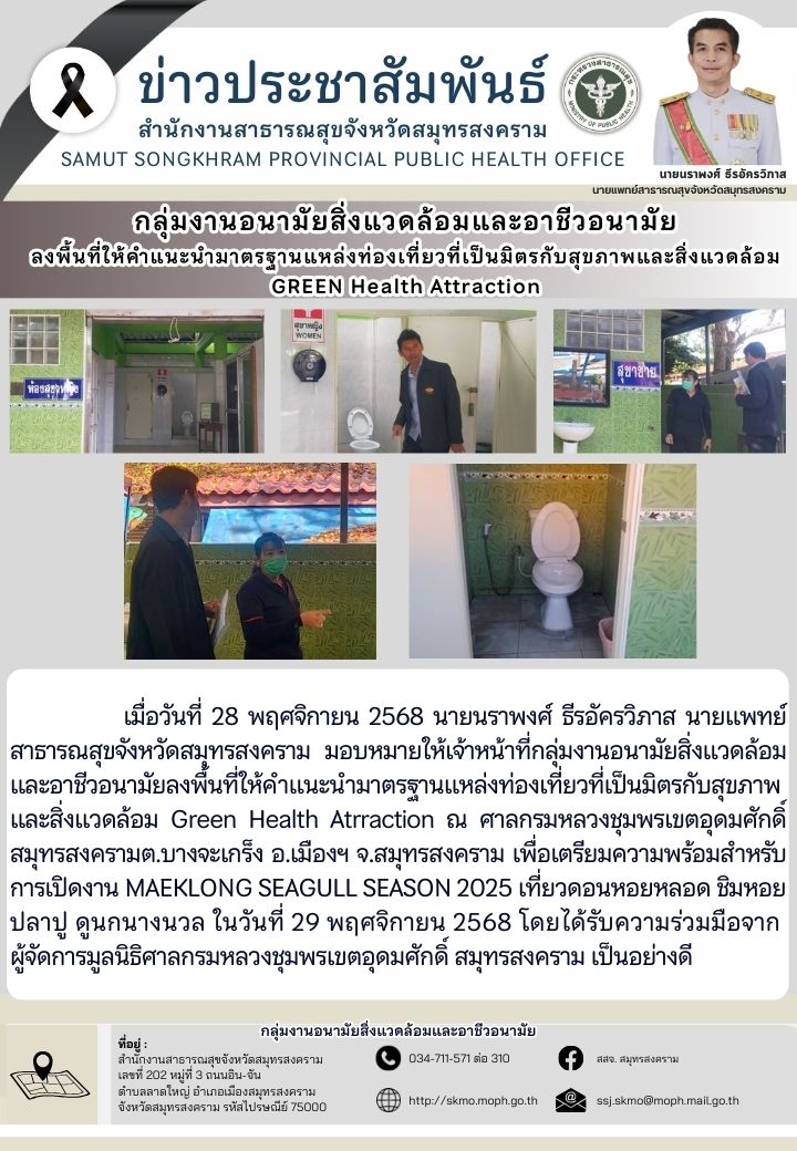 เมื่อวันที่ 28 พฤศจิกายน 2568 นายนราพงศ์ ธีรอัครวิภาส นายแพทย์สาธารณสุขจังหวัดสมุทรสงคราม